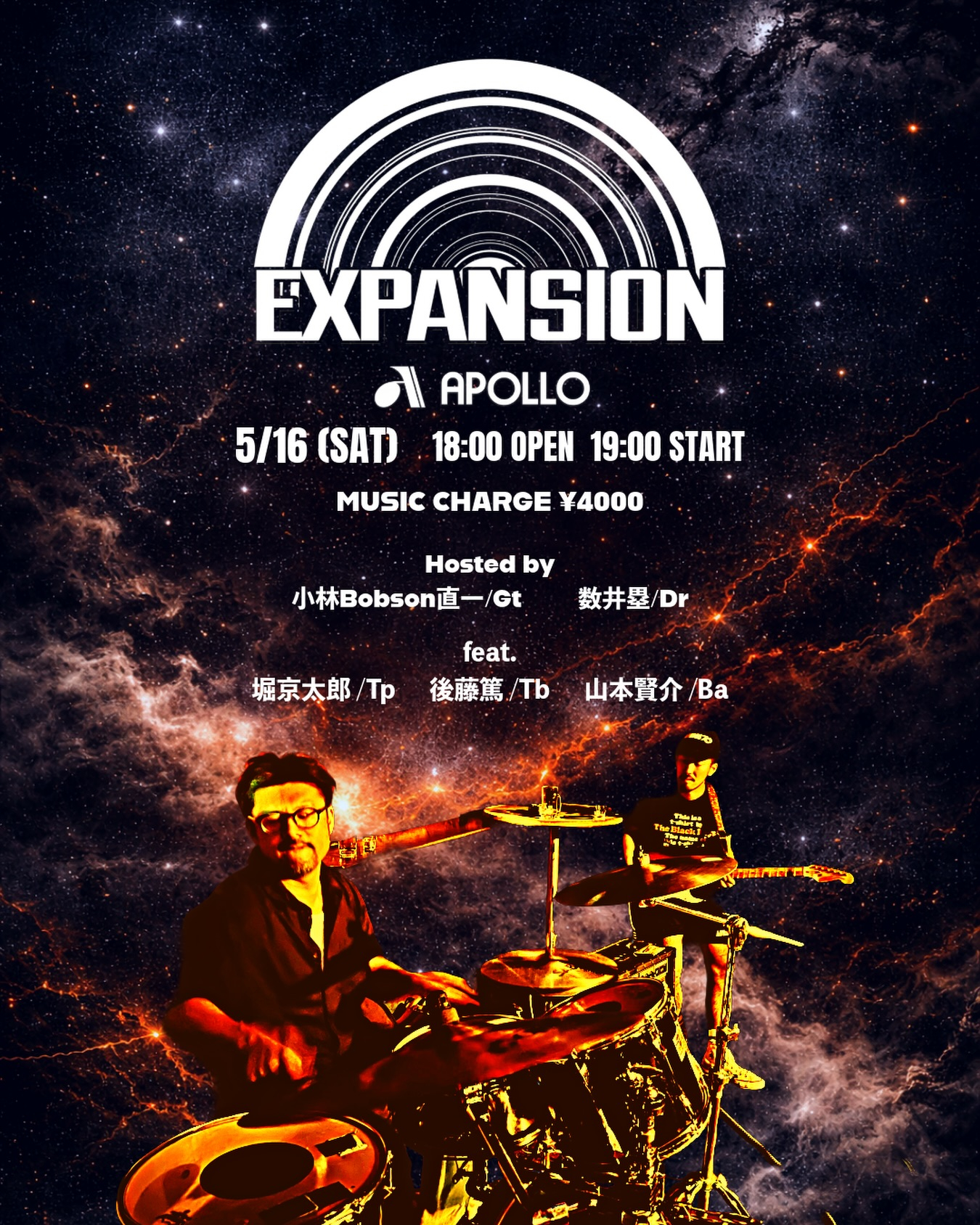 EXPANSIONがAPOLLOに初登場!EXPANSIONがAPOLLOに初登場! ギタリスト小林 “Bobsan” 直一 × ドラマー数井塁による ファンク・コミュニティ。 ライブの枠を超え、 音と人が混ざり合う“ハングアウト空間”を創り続けている。  5 […]