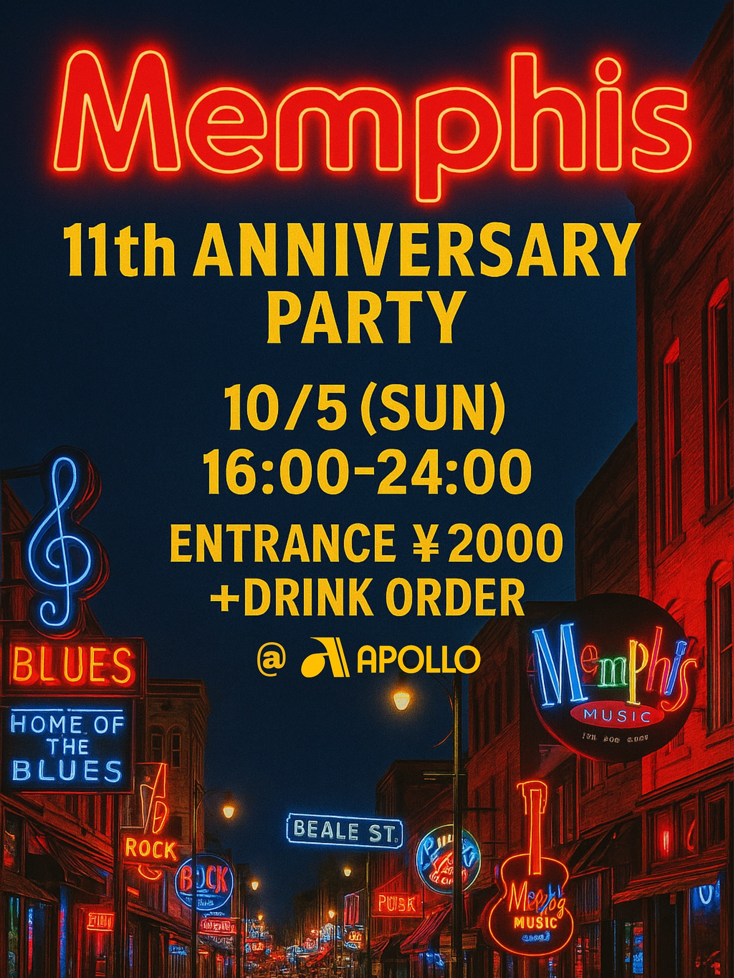 Memphis 11周年パーティーMemphis 11周年パーティー おかげさまで Memphis は11周年を迎えることができました✨いつも遊びに来てくれるみなさん、本当にありがとうございます! そんな感謝を込めて、今年もみんなで盛大にパーティーを開催 […]